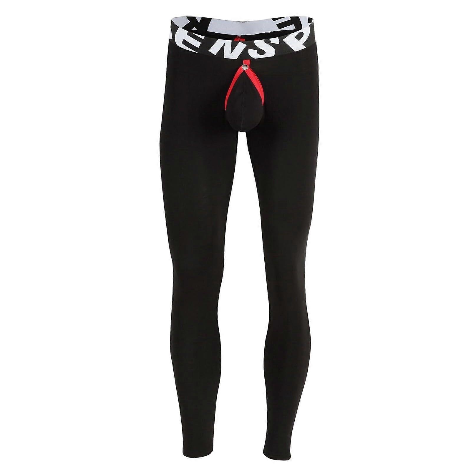 Men's Sports Trousers Quick Dry Compression Fit Breathable Open Crotch Training Tights XL Black