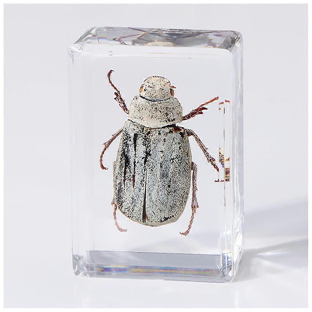 Real White Scarab Beetle in Resin Paperweight, Crystal Clear Real Insect Specimen for Education Display