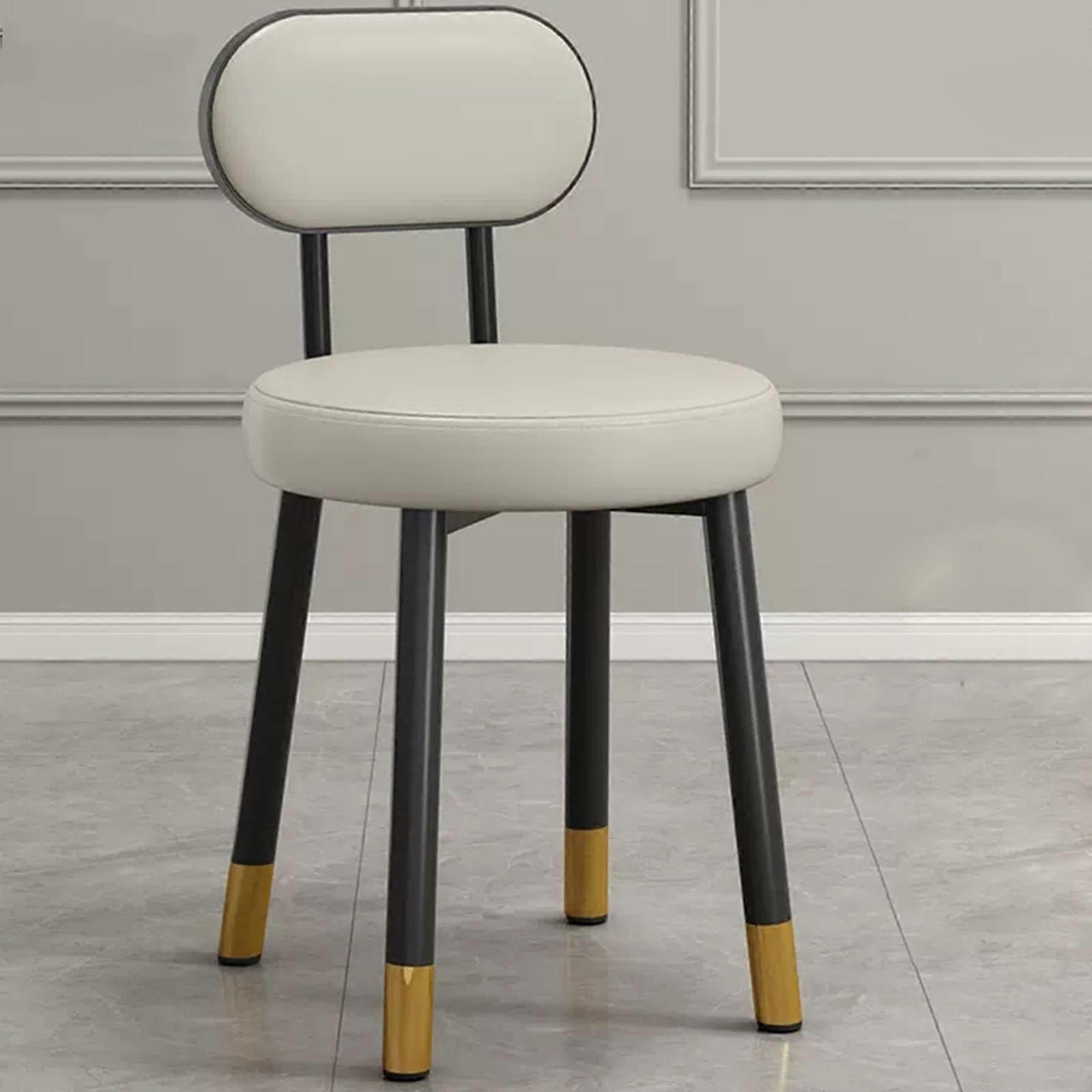 Modern Vanity Chair with Backrest, Grey PU Upholstered Makeup Stool, Gold Metal Legs for Bedroom