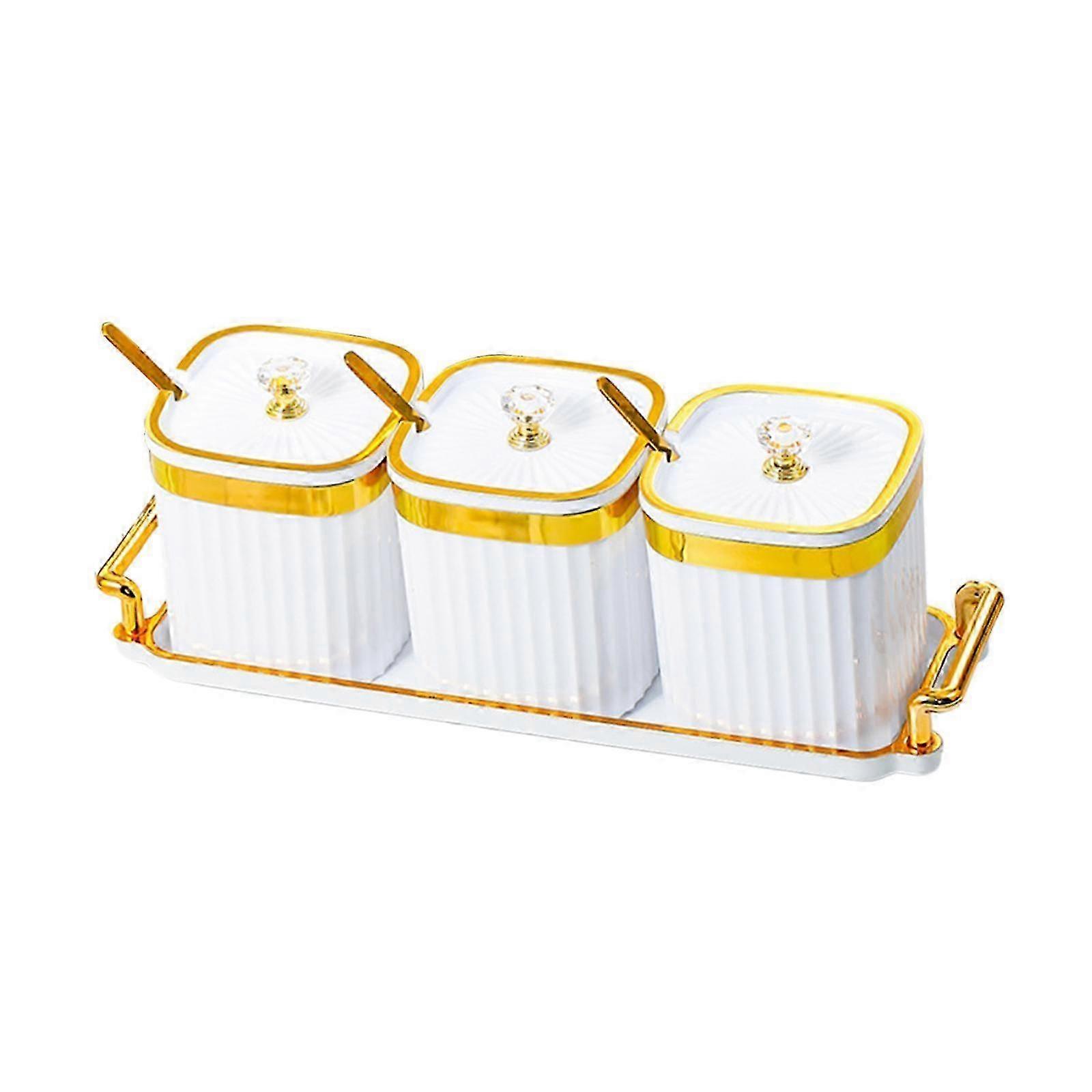 Condiment Spice Jar Condiment Canisters with Lids and Spoons,Sturdy,SeasoningCOLOR:white