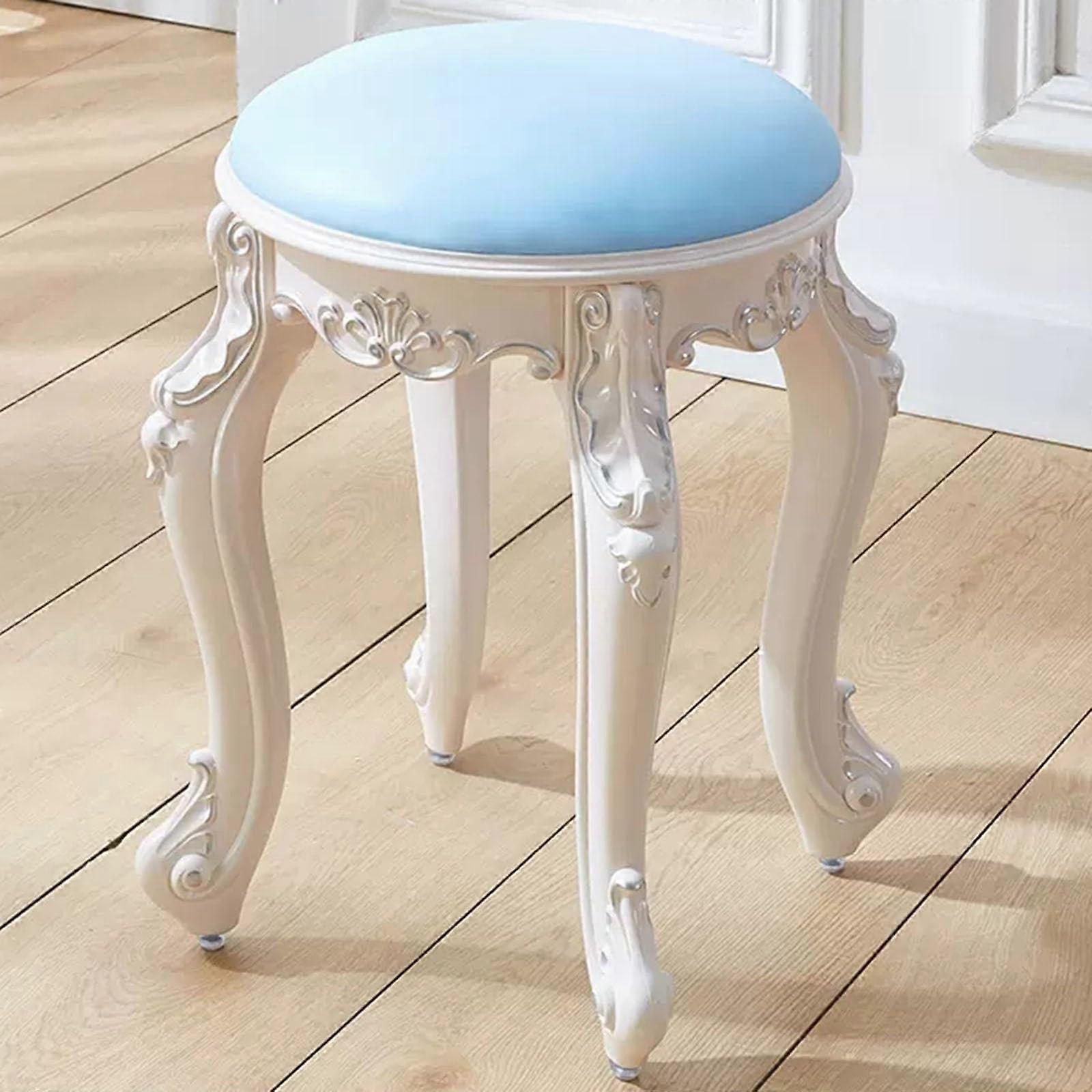 Vintage Blue Vanity Stool with Padded Seat, Round Makeup Chair for Dressing Table, Sturdy Legs