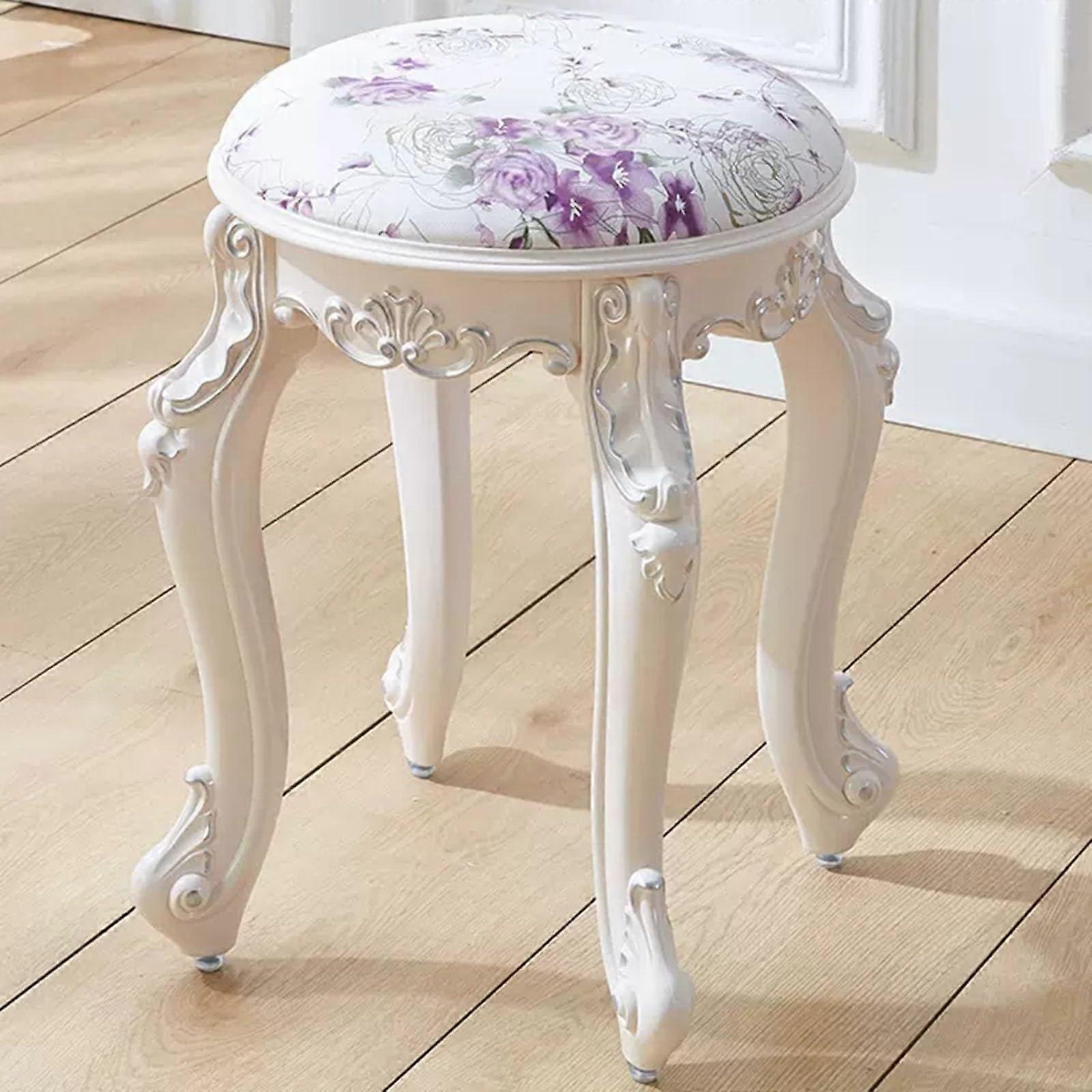 Vanity Stool with Padded Seat, Purple Round Makeup Chair with Steel Legs for Dressing Room