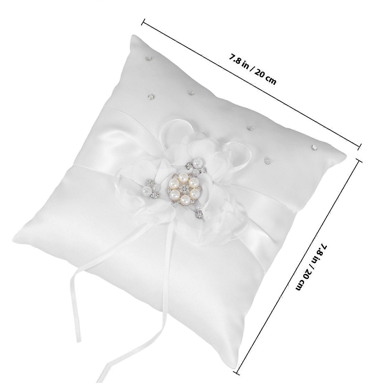 White Flower Wedding Ring Pillow with Ribbon for Wedding Use Cushion