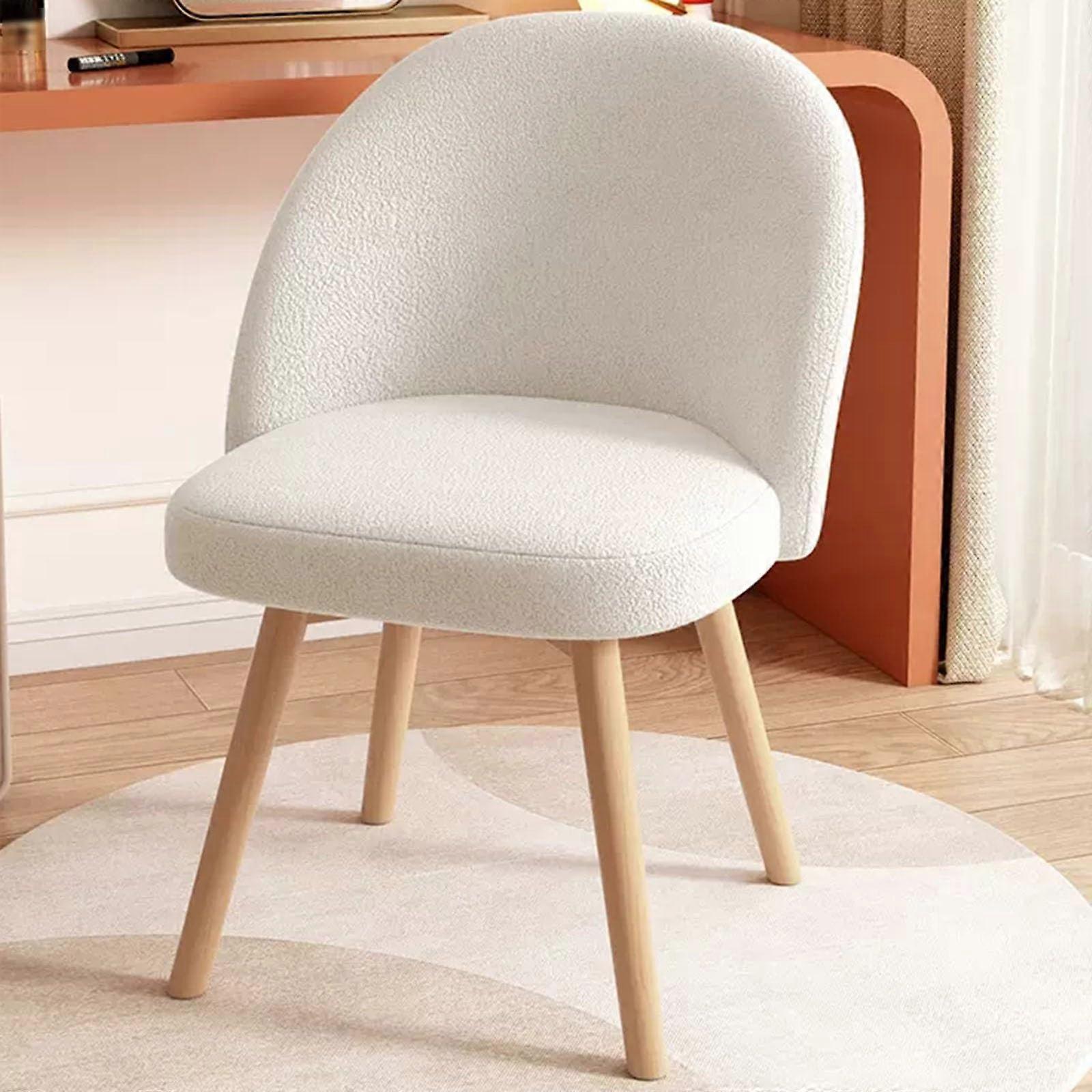 Vanity Chair Off White Velvet with Backrest 360° Swivel Seat Wooden Legs for Bedroom Makeup