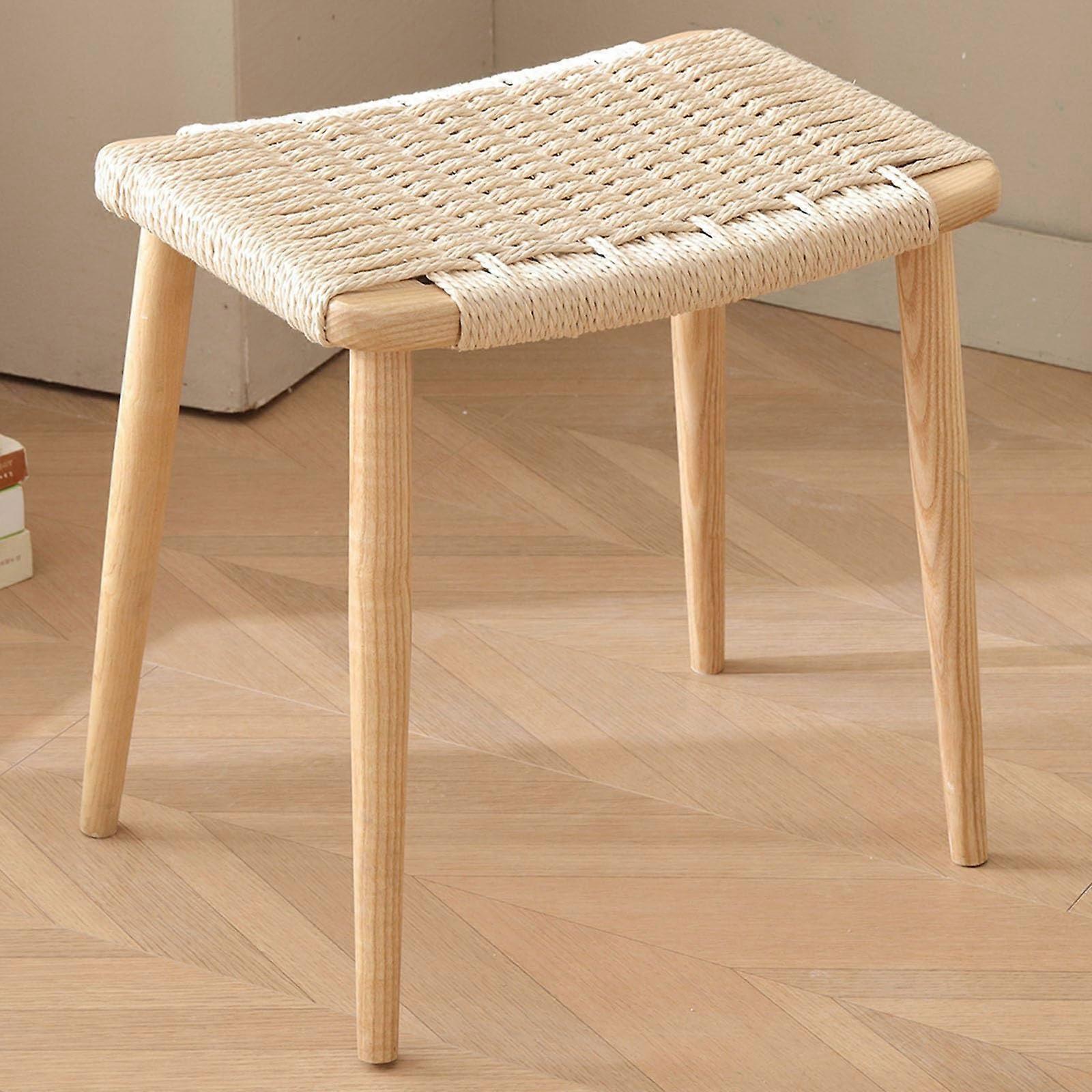 - Elegant and Versatile Design: This stool blends modern and traditional aesthetics, making it a perfect fit for various interior styles—from contemporary to classic decor. - Comfortable Breathable Seating: The hemp rope seat is designed for long-lasting comfort, featuring a soft and flexible surface. Crafted with three layers of hand-woven twine, it maintains its shape without sagging or stretching. - Sturdy Solid Wood Legs: Equipped with robust solid wood legs, this stool offers strong support and stability, with a weight capacity of up to 330 lbs, ensuring safety and durability. - Ideal Dimensions: Measuring 17”L x 12”W x 17”H, this stool is perfect for use at a dressing table, desk, or as an accent piece in any room. - Practical Applications: Use it as a makeup stool to enhance your beauty routine, a stylish addition to your entryway, or an extra seat in your living area. Its multifunctionality makes it a valuable addition to your home.