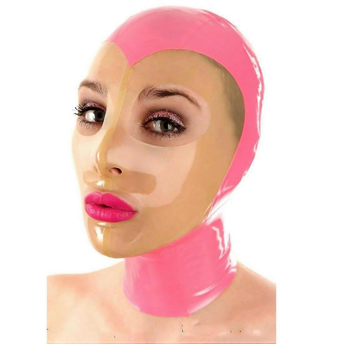 Latex Catsuit with Full Face Hood Open Eyes Back Zipper Black Transparent Cosplay XL