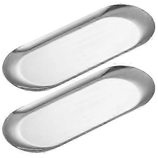 2Pcs Stainless Steel Tray with Mirror Polished Finish - Heavy Duty Oval Shape for Towel, Jewelry Storage, Cake Dish & Food Serving in Bathroom