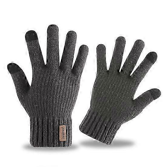 Men's Winter Knitted Gloves - Touchscreen & Windproof, Elastic Five-Finger Anti-slip with Plush for Outdoor & Camping Activities