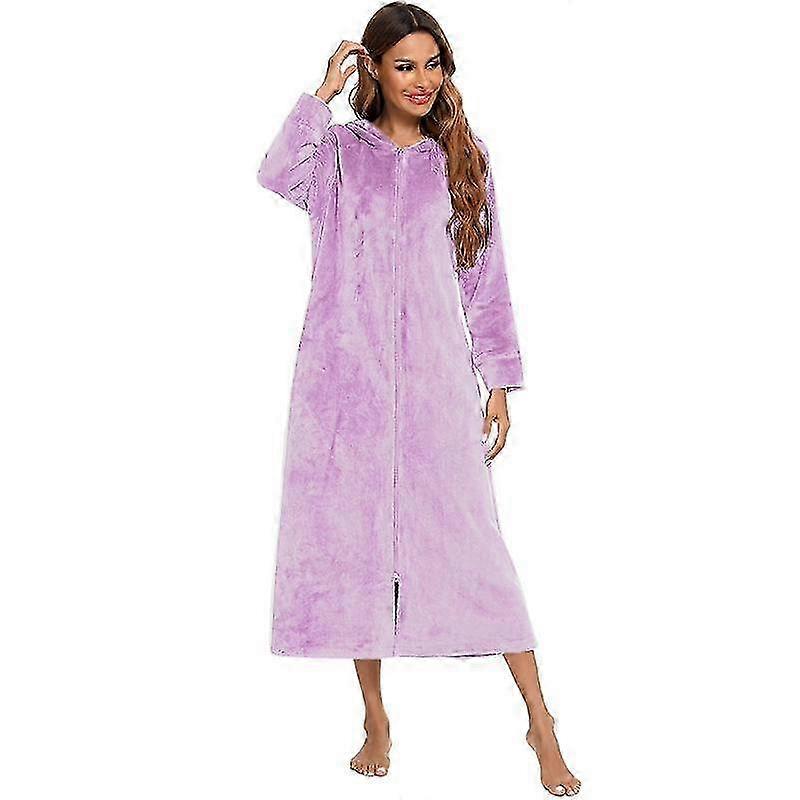 Women's Plush Fleece Hooded Zip-Up Robe - Cozy Winter Loungewear