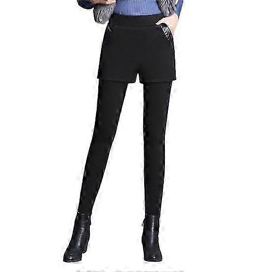 Women's High-Waisted Elasticated Waistband Pocketed Leggings with Thickened Design and Faux Two-Piece Fleece Lining Skirt
