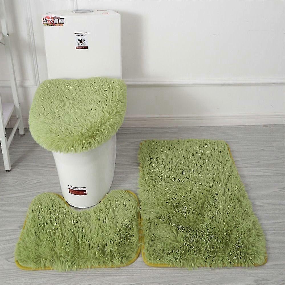 3pcs/set Fluffy Hair Toilet Lid Cover Rug & Solid Color Shower Mats for Bathroom