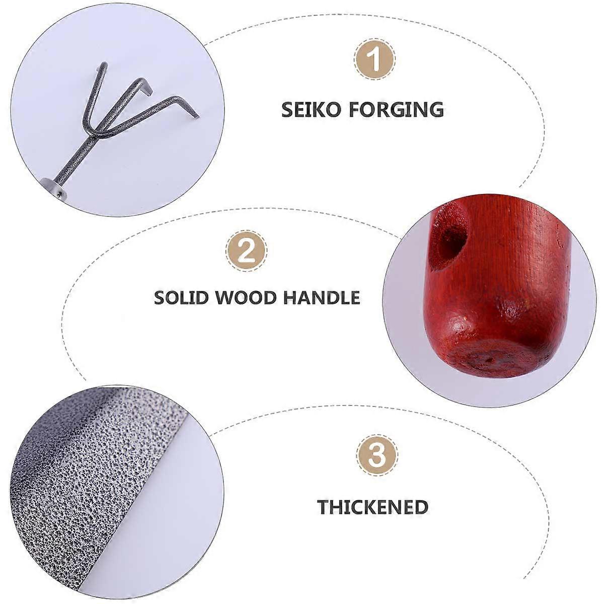 Gardening Tools Three-Tooth Rake for Weeding 2Pcs Durable Iron and Wood