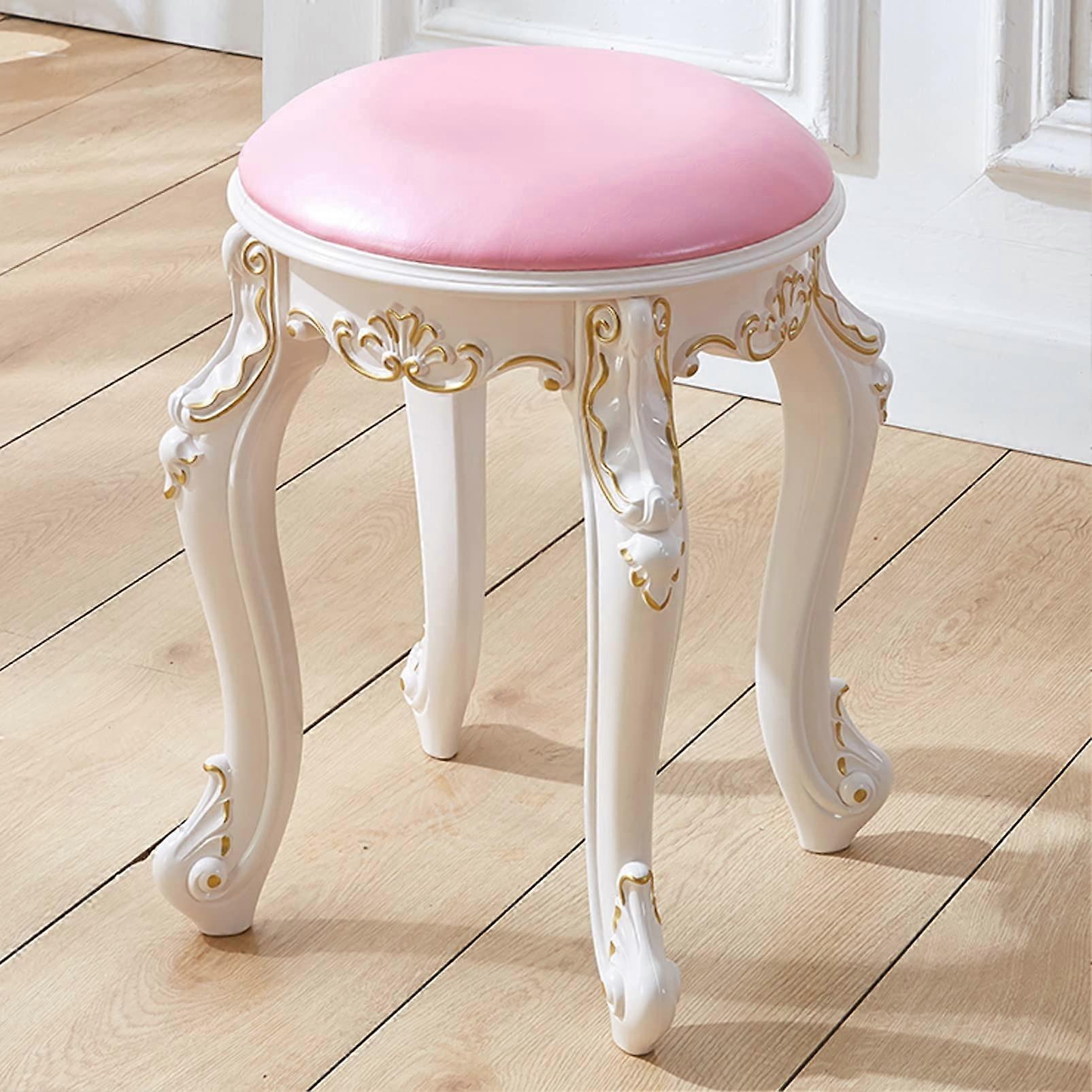 Vanity Stool with Padded Seat, Elegant White Makeup Bench for Bedroom and Bathroom Use