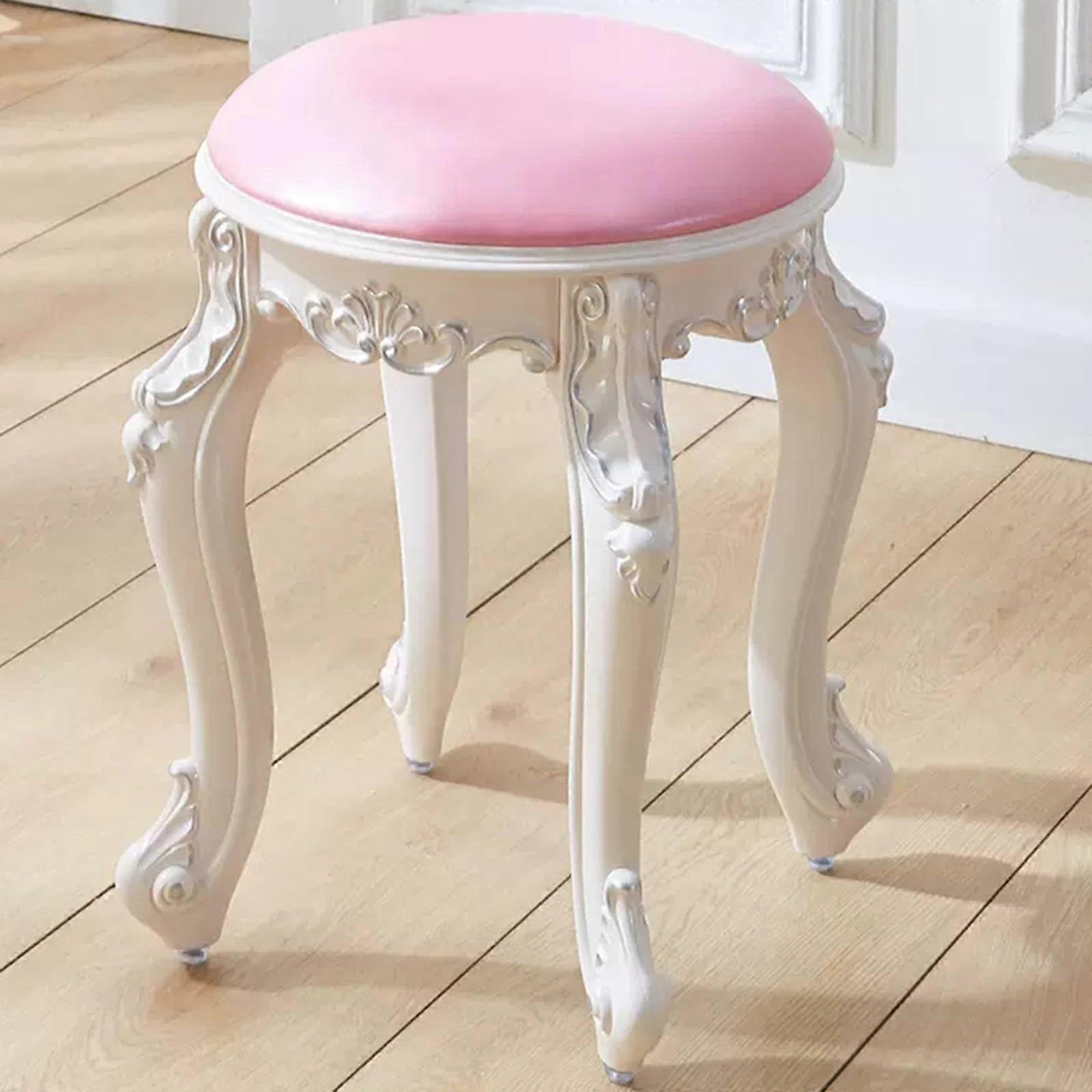 Vintage Pink Vanity Stool with Comfortable Padded Seat, Round Makeup Chair with White Lacquered Legs