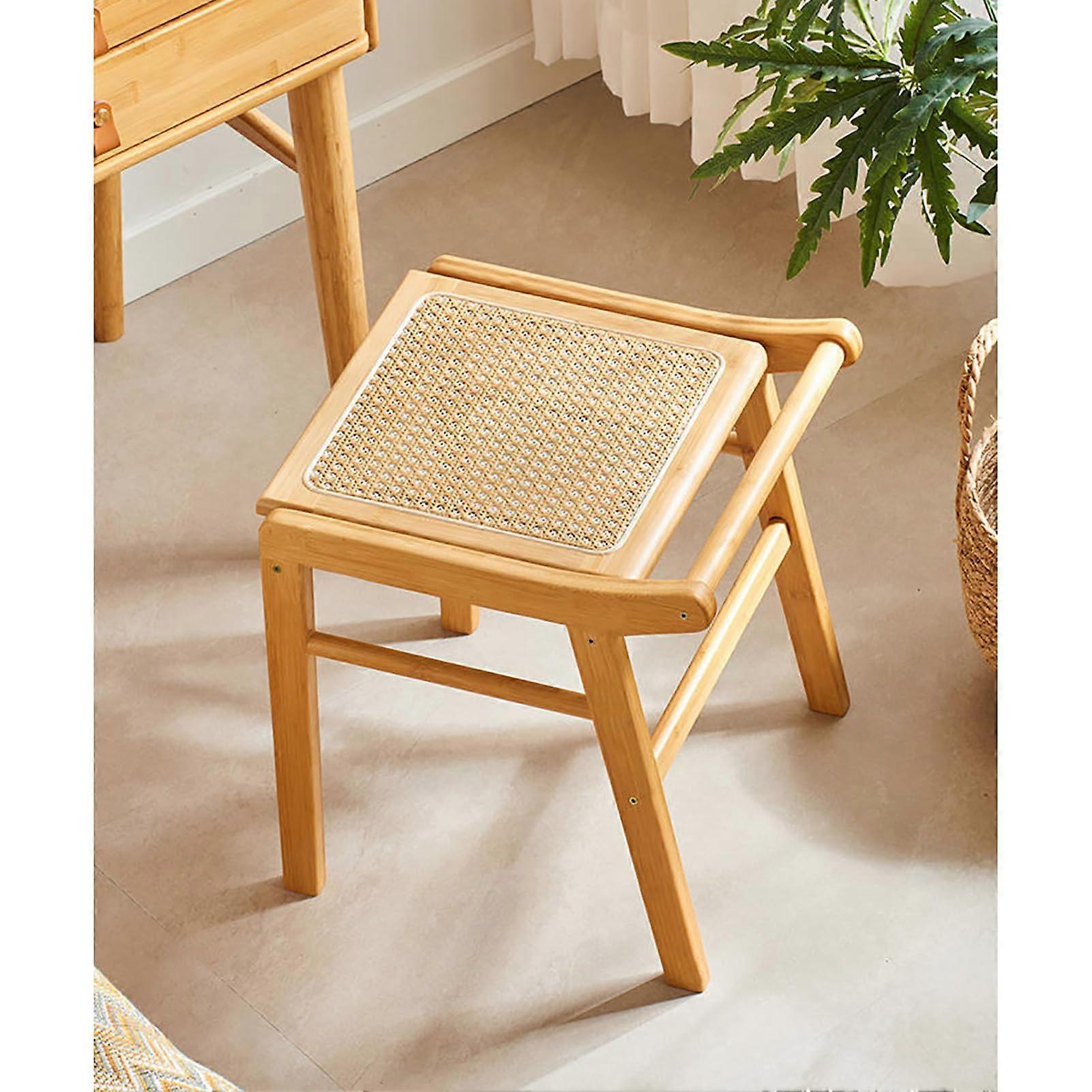 Bamboo Vanity Stool with Elegant Faux Rattan Seat for Makeup Room, Entryway and Living Room