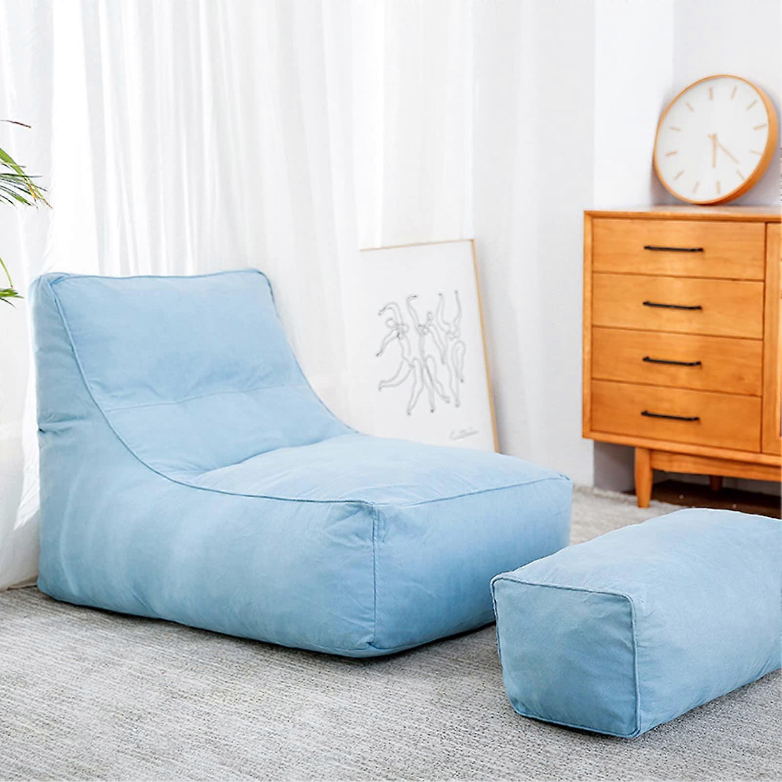 Bean Bag Chair Cover Cotton Canvas with Footstool Storage Washable No Filler Sky Blue for Adults and Kids