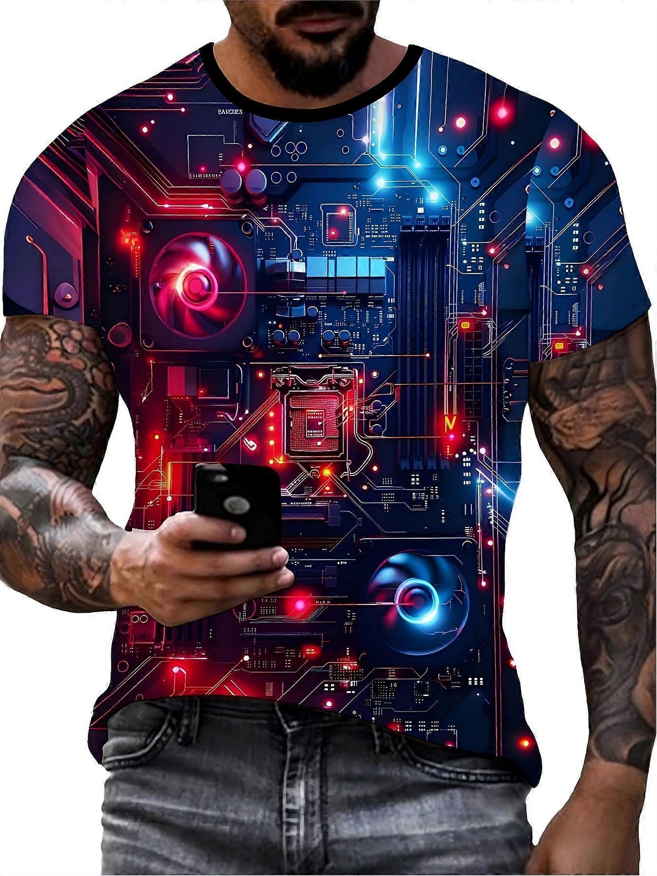 Men's 3D Print Neon Circuit Board Graphic T Shirt Futuristic Style Print Casual Top