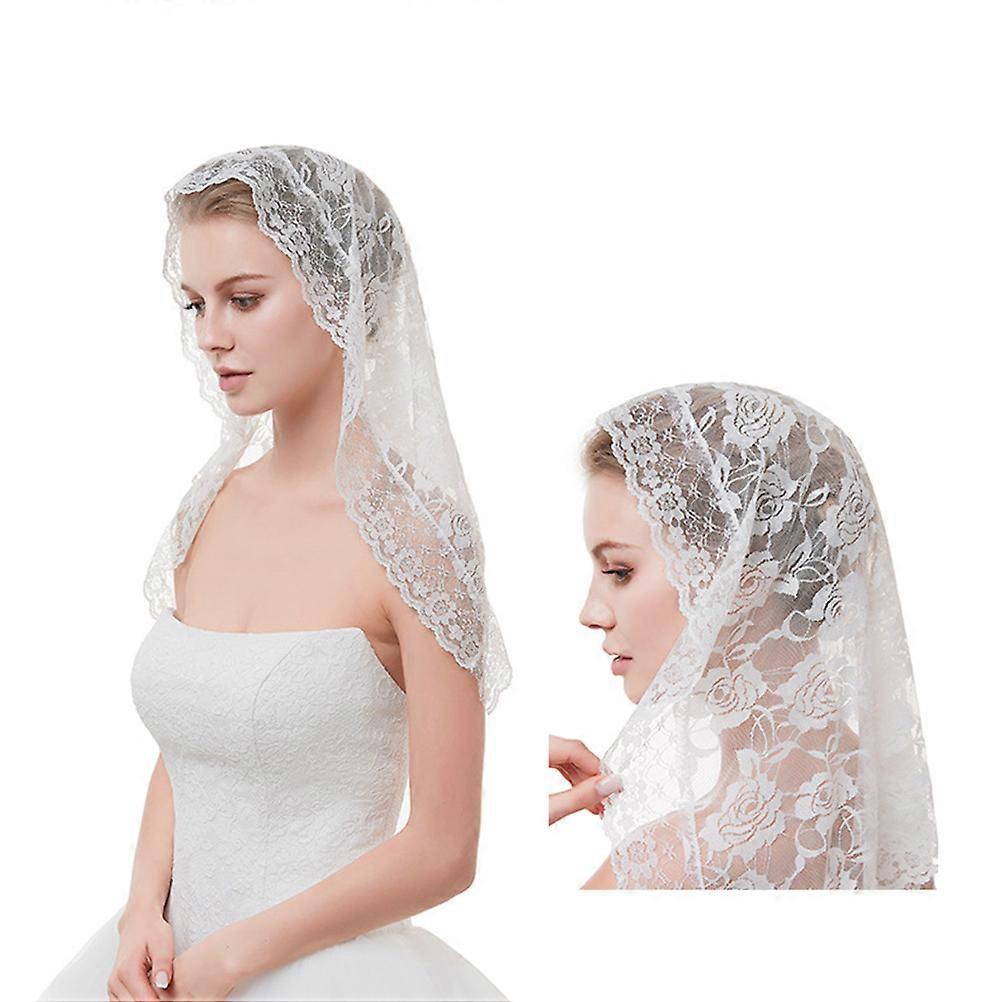 White Short Floral Veil Muslim Bridal Wedding Accessories 95x55cm 1Pack For Bride