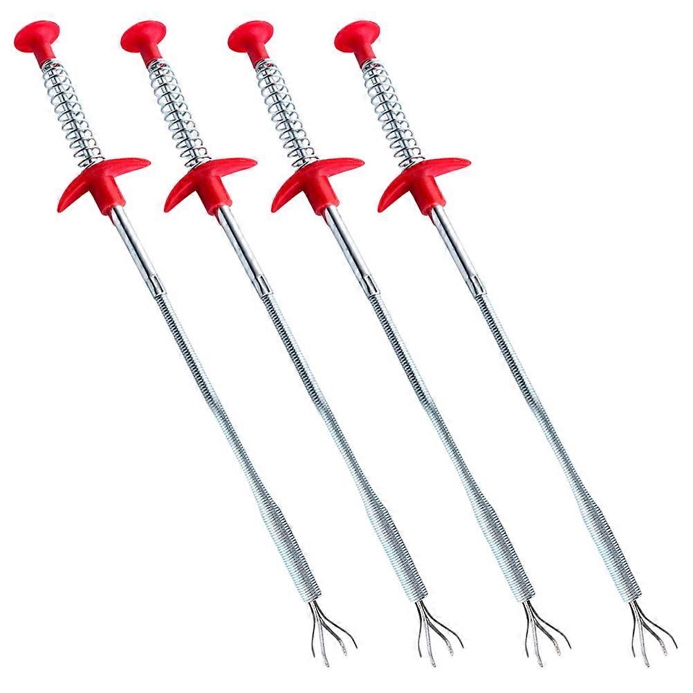 Cleaning Drain Tool Sewer Dredging Device Iron Wire PP Bathroom Cleaning Homeowners Red 60x3x3cm Hair Removal 4Pcs