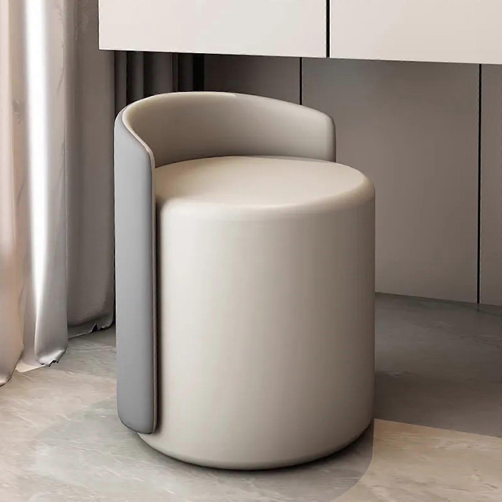 Grey PU Leather Vanity Stool with Waterproof Seat for Bedroom or Swivel Makeup Chair for Dressing Table