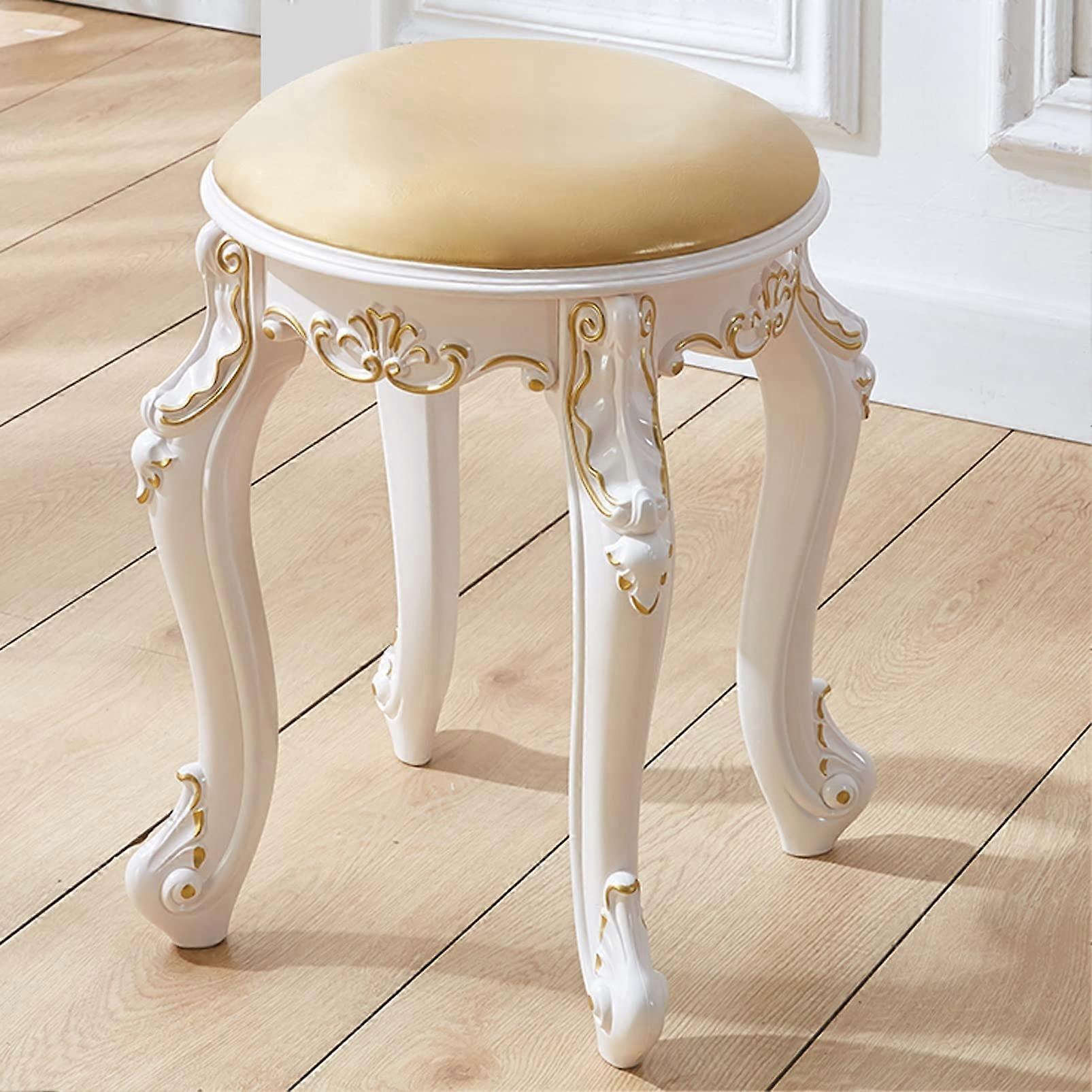 Gold Padded Vanity Stool for Bedroom with Cushioned Piano Bench Seat, ABS Steel Legs, 43cm