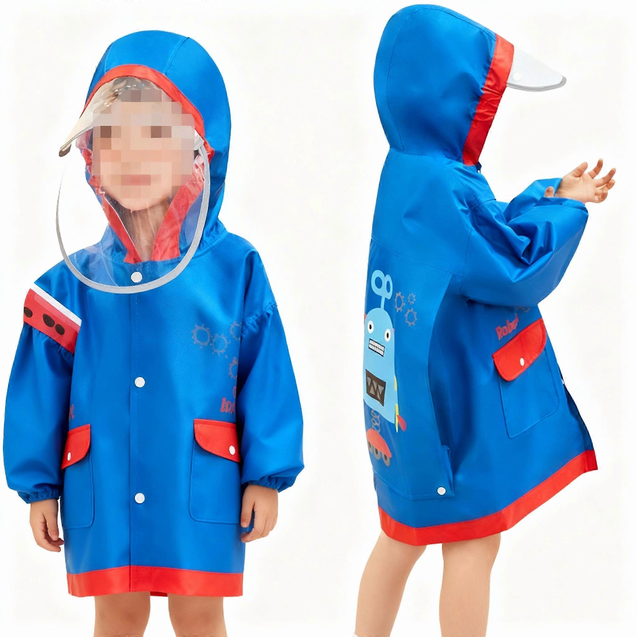 Lemon Baby Upgraded Thick Oxford Cloth Children Raincoat with Backpack Position for Boys and Girls Double Brim Hood
