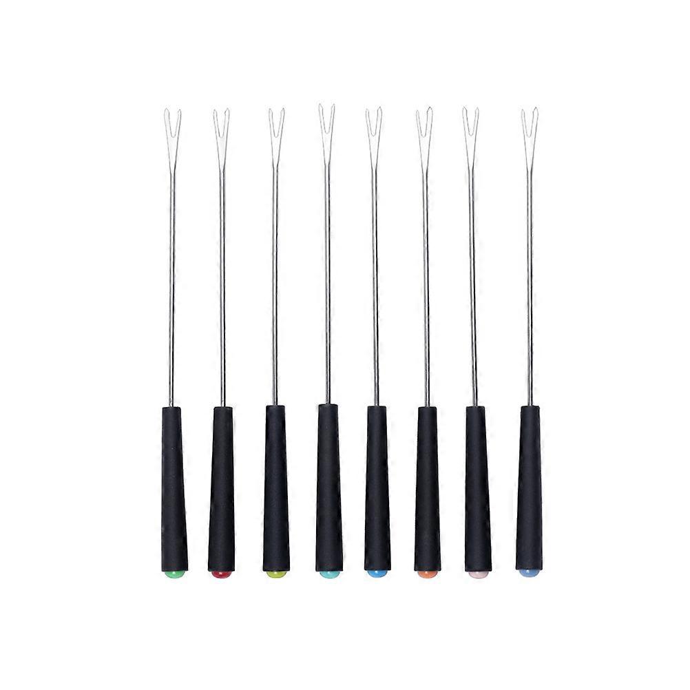 Camping Cooking Forks Stainless Steel Cheese Fondue Forks Random Color Handle 8Pcs