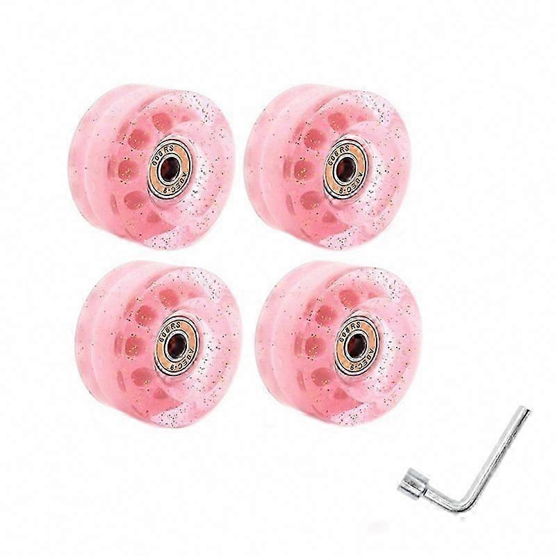 Premium Roller Skate Wheels 4-Piece Set - 32 x 58mm 82A High-Rebound PU | Pink Glitter with ABEC-9 Bearings | Indoor & Outdoor Skating Essential