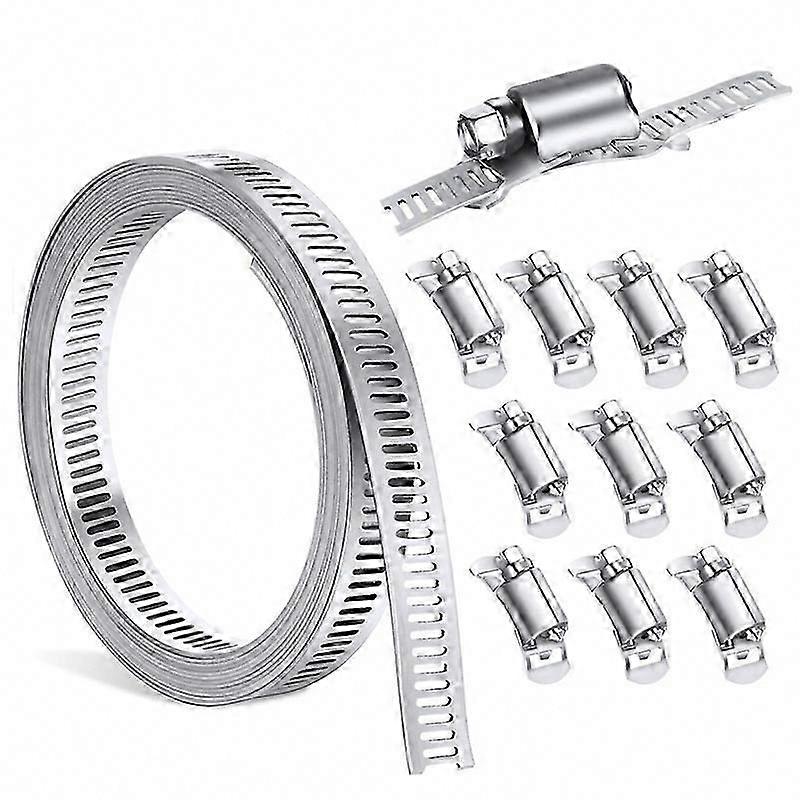 Premium Stainless Steel Hose Clamp Kit - Adjustable DIY Worm Gear Pipe Clips | 304 Steel, 9.84Ft Band, 10 Fasteners