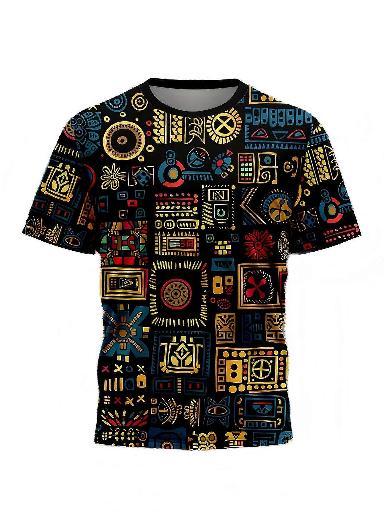 Men's 3D Print Colorful Tribal Pattern Graphic T Shirt Intricate Print Casual Top
