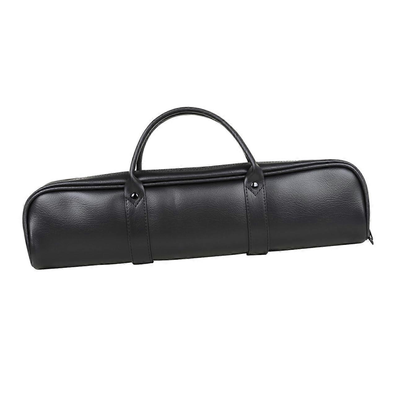 Black Leather Flute Case with Shoulder Strap for Outdoor Use and Instrument Protection