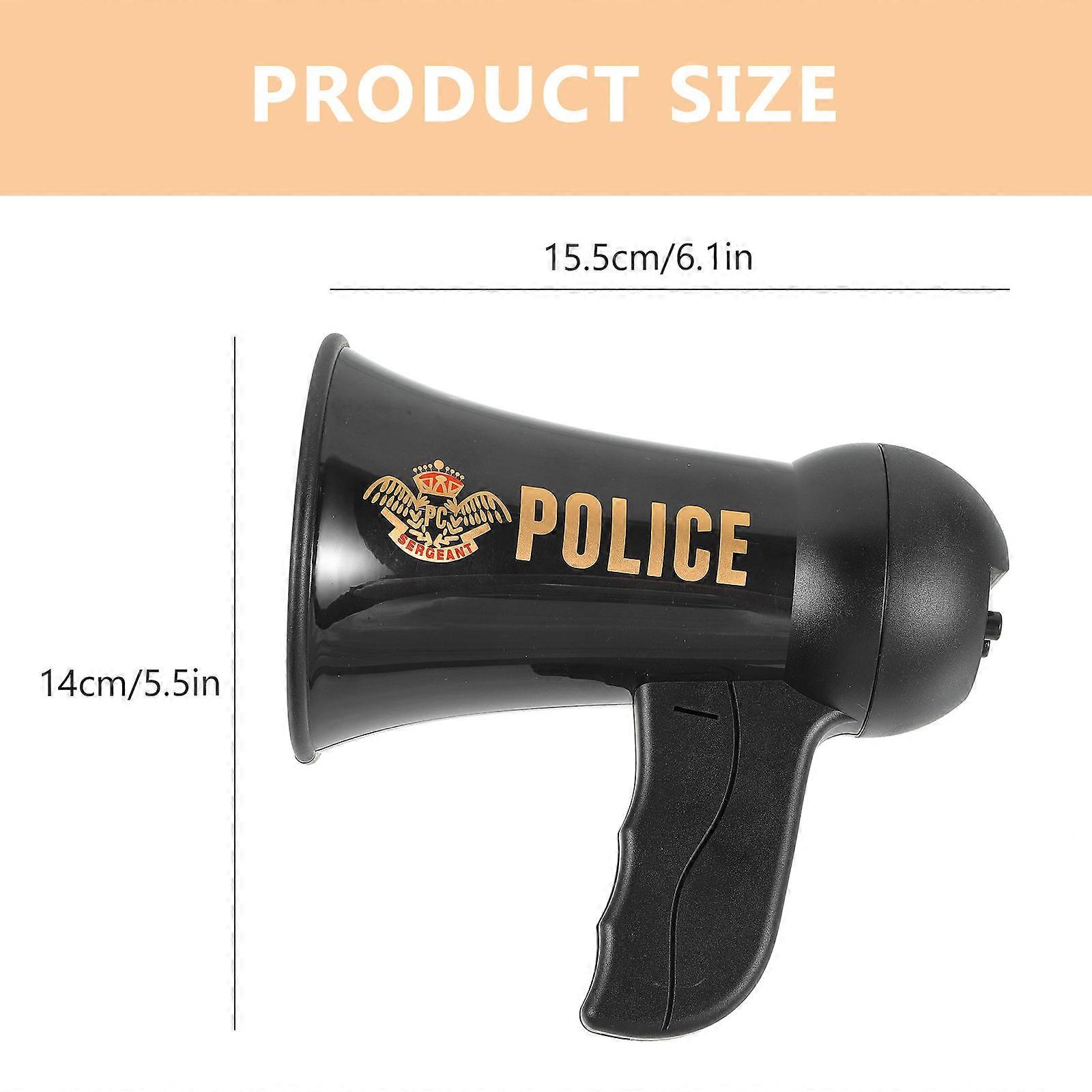 Made of good material, which is durable to use. This lightweight and handy trumpet can be used as a voice amplifier, the sound is very clear. Also a cosplay toy for your kid, bring much more joy to your kid. Improve the emotion with your kid. Features -Color:Black -Material:plastic -Size:15.50X14.00X9.50cm/6.09X5.50X3.73in -Battery: 2 x AA batteries(not included) - Protect your voice perfectly, give your kids hours of fun with this police trumpet toy. - The sound is very clear, perfect for making grand announcements to family and friends. - Children can make their presence felt when equipped with a practical loud microphone. - Large trumpet horn design makes it easier for children to play the role of police. - Realistic police trumpet sound enhances the authenticity of role-playing of police. Package list: 1 x police trumpet toy