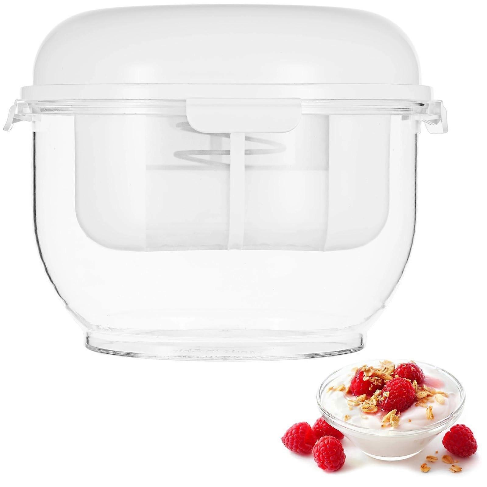 Greek Yogurt Maker and Filter – Efficient, Versatile, and Easy to Use • Efficient Greek Yogurt Filtering: This specialized filter is designed to separate whey from yogurt quickly and cleanly, delivering smooth, thick, creamy Greek yogurt every time. No more messy straining or inconsistent texture. • Removable Inner Layer for Quick Cleaning: Built with a detachable interior layer that is simple to remove and wash. This design ensures fast, hassle cleaning, helping maintain durability and performance for every batch. • Transparent Construction for Precise Monitoring: The clear plastic body lets you easily see the filtration process in action. Monitor progress at any stage and control yogurt thickness exactly to your preference. • Versatile MultiPurpose Function: for Greek yogurt preparation, this filter also serves well for homemade cheesemaking and soy milk filtering. A useful tool for crafting fresh, healthy dairy and plantbased products at home. • Compact and Compatible: Suitable for home kitchens of any size, its compact form helps save space while delivering professionalquality results. Compatible with standard homemade yogurt batches. • Durable Material: Made from quality, foodsafe plastic that withstands repeated use while maintaining filtration performance. Practical Use Scenarios: 1. Create your own rich, tangy Greek yogurt without storebought additives or preservatives, adjusting thickness to suit your taste. 2. Prepare fresh ricotta or soft cheese by separating curds from whey with the same reliable filter. 3. Strain soy milk for silky, smooth plantbased beverages or tofumaking. This Greek yogurt filter offers a dependable, userfriendly way to enjoy fresher, healthier homemade dairy and plantbased products with professional results.