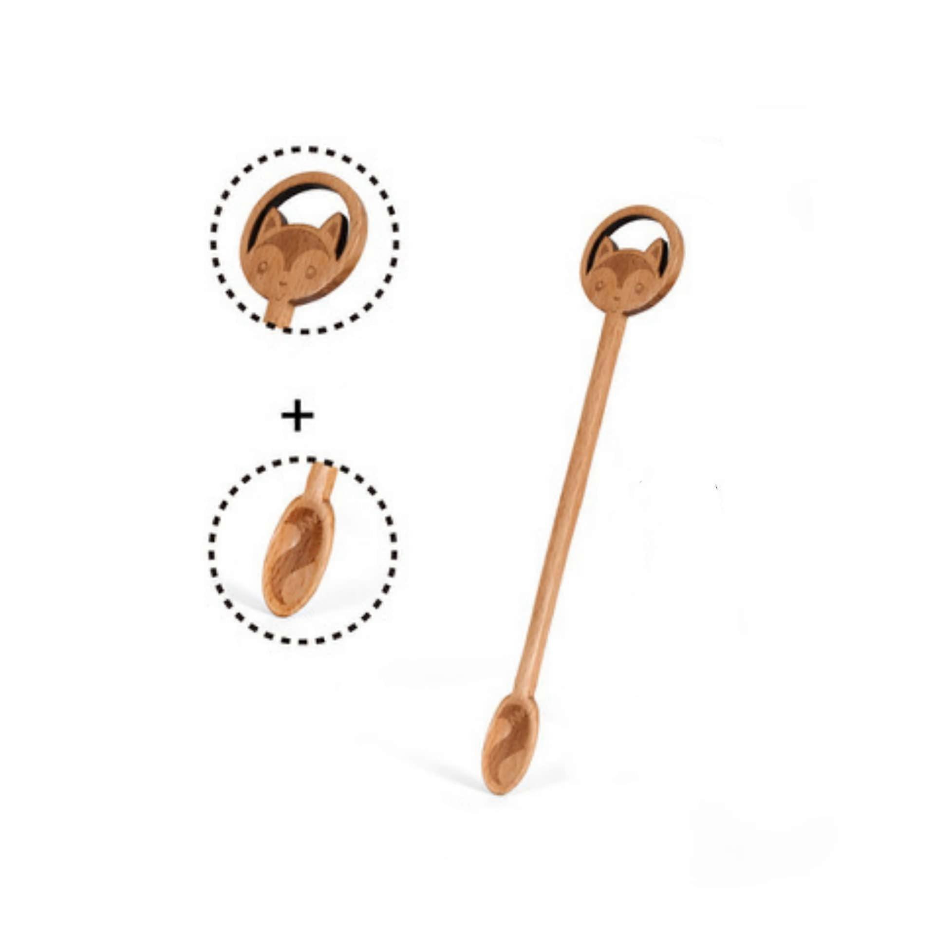 Wooden Coffee Spoon Set Long Handle Stirring for Tea and Beverages Animal Shape Fox Design