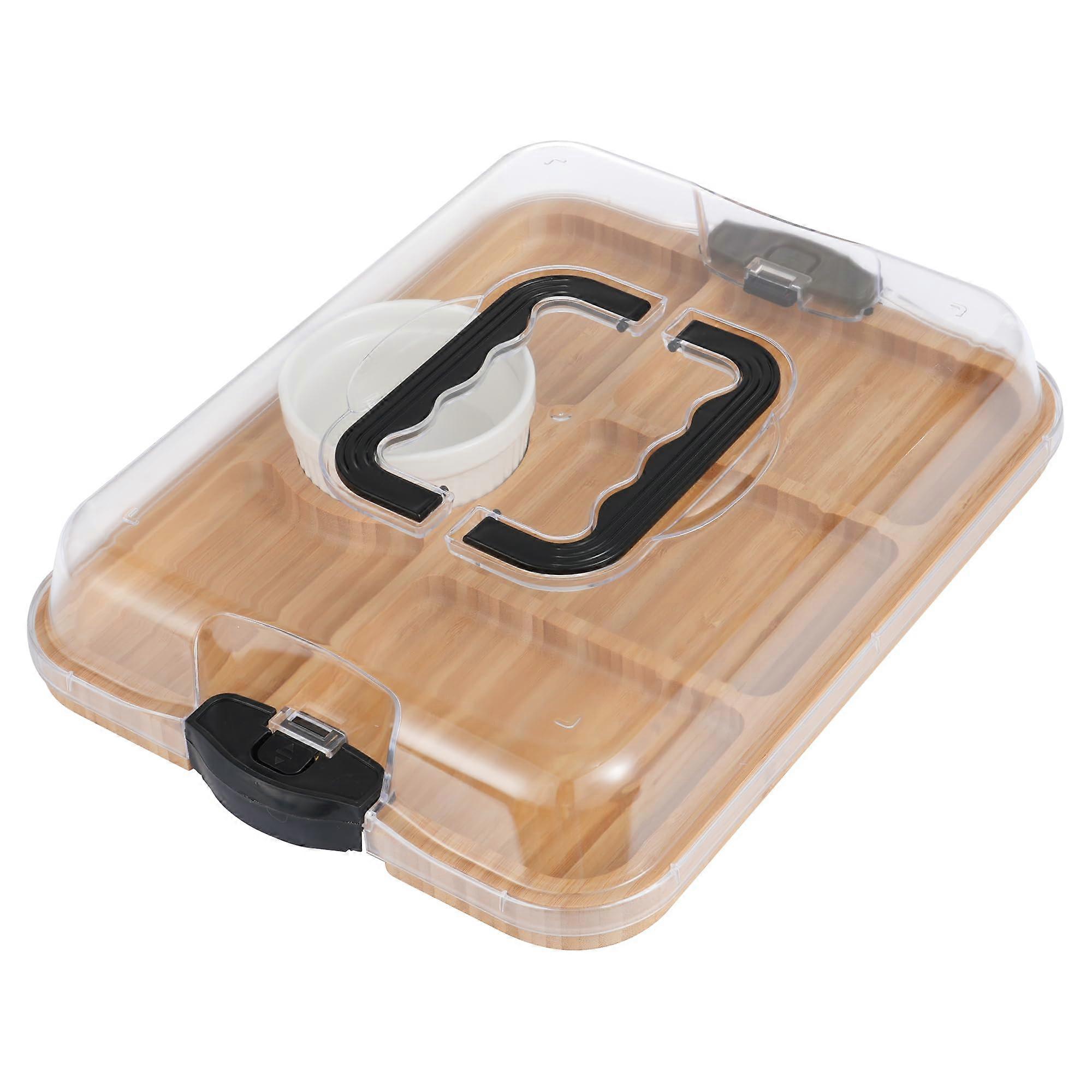 Charcuterie Board with Airtight Lid and Handles, 6 Compartment Bamboo Serving Tray for Picnic Party