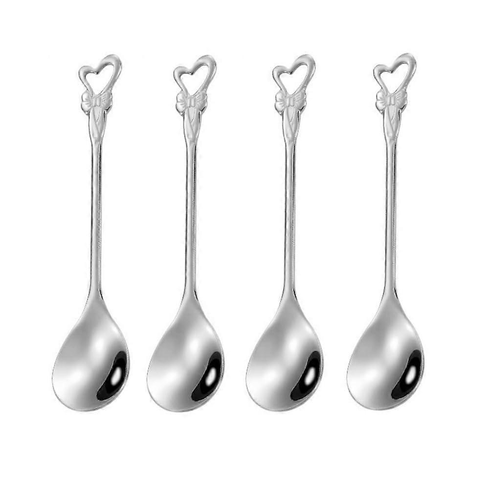 Stainless Steel Coffee Spoon Set with Heart Butterfly Design, Silver 4.7 inch Dessert Spoons 10pcs