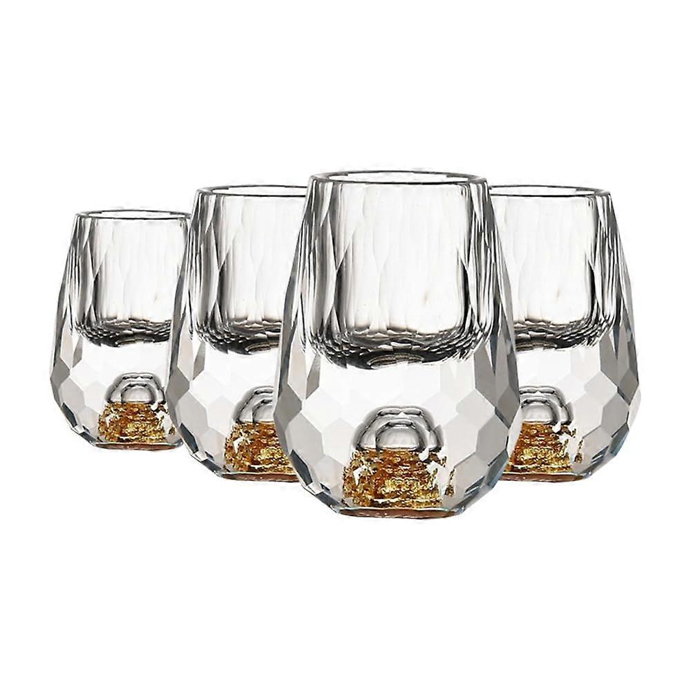 Crystal Shot Glasses with 24K Gold Leaf Detailing, 0.5oz Set of 4, Elegant Collectible Gift