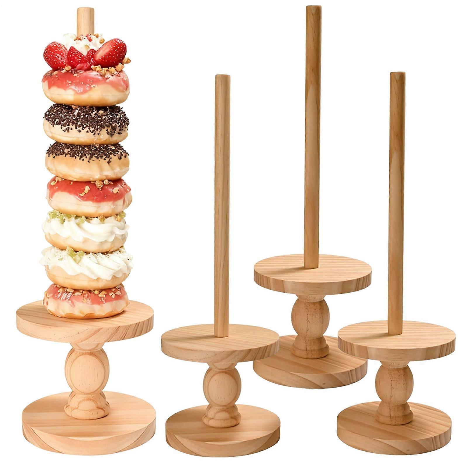 Donut Display Stand with Stable Weighted Base, Hygienic Pine Wood Holder for Party Dessert Table