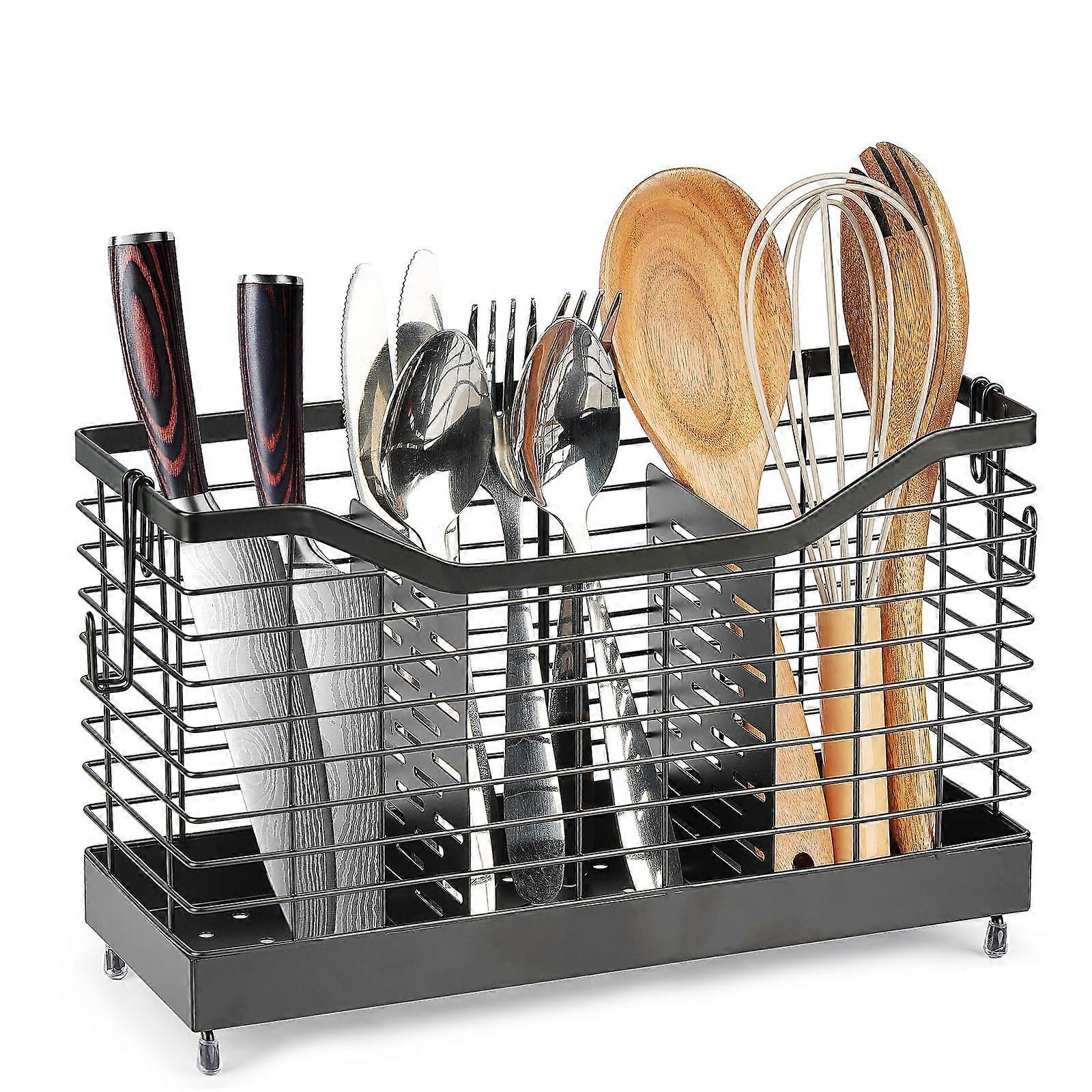 Extra Large Capacity and Organized Storage Keep your kitchen tools neatly arranged and within reach. Measuring 11.6 inches long, 4.3 inches wide, and 7.4 inches , this utensil holder offers three spacious compartments designed to hold a wide variety of cooking essentials. Easily store spatulas, spoons, whisks, ladles, tongs, and other utensils in a single, accessible place. Its open design allows for quick access while helping maintain a tidy, clutter countertop. Durable, Quality Construction Crafted from sturdy iron, this kitchen utensil holder is built to last for years of daily use. The rustresistant surface protects against corrosion, ensuring a clean and attractive appearance over time. Nonslip pads on each of the four bottom corners help keep the holder stable and prevent scratches on your countertops. Efficient 3Compartment Design The three large compartments make it simple to sort utensils by type or size. Whether you separate wooden spoons from metal tools, or keep baking and cooking utensils apart, you will always find what you need without rummaging through drawers. This design enhances efficiency and supports a wellorganized kitchen workspace. Easy to Clean and Maintain Cleaning is quick and effortless. Rinse the holder under water to remove any residue, and enjoy its antirust and anticorrosion properties that keep it looking and performing like . Fully assembled and ready to use, it is an ideal home addition and a thoughtful gift for anyone setting up a kitchen. Practical Applications for busy home cooks who want quick access to everyday tools while cooking Useful for baking stations to keep whisks, spatulas, and measuring spoons organized in one place Suitable for outdoor cooking areas or barbecue setups where durability and ease of cleaning are important This utensil holder delivers reliable performance, functional storage, and lasting durability, making it an essential accessory for any kitchen.