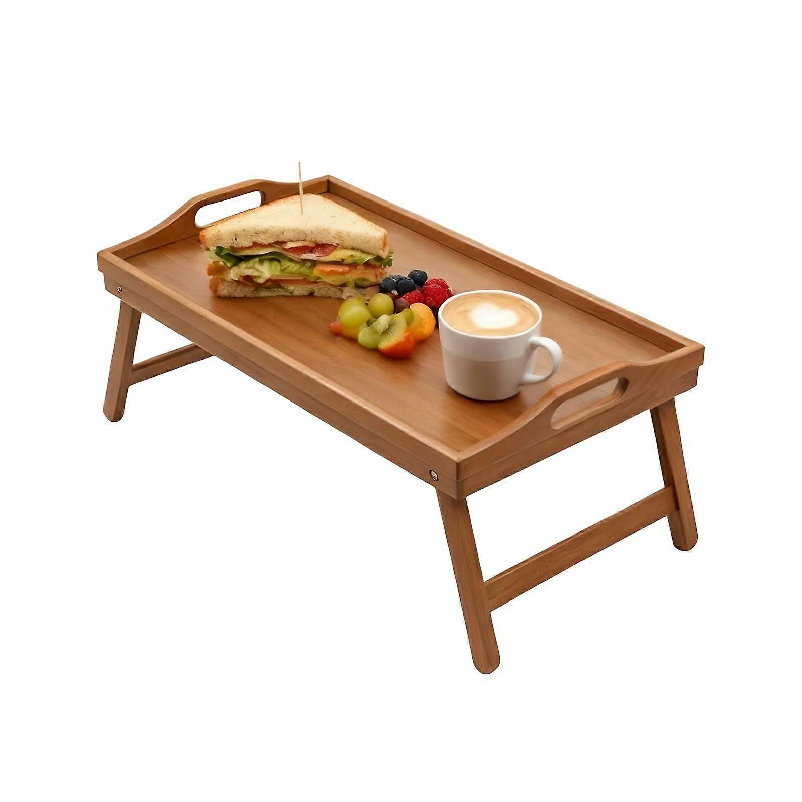 Bamboo Breakfast Tray with Folding Legs, Acacia Finish Bed and Lap Desk with Handles, Dark Brown