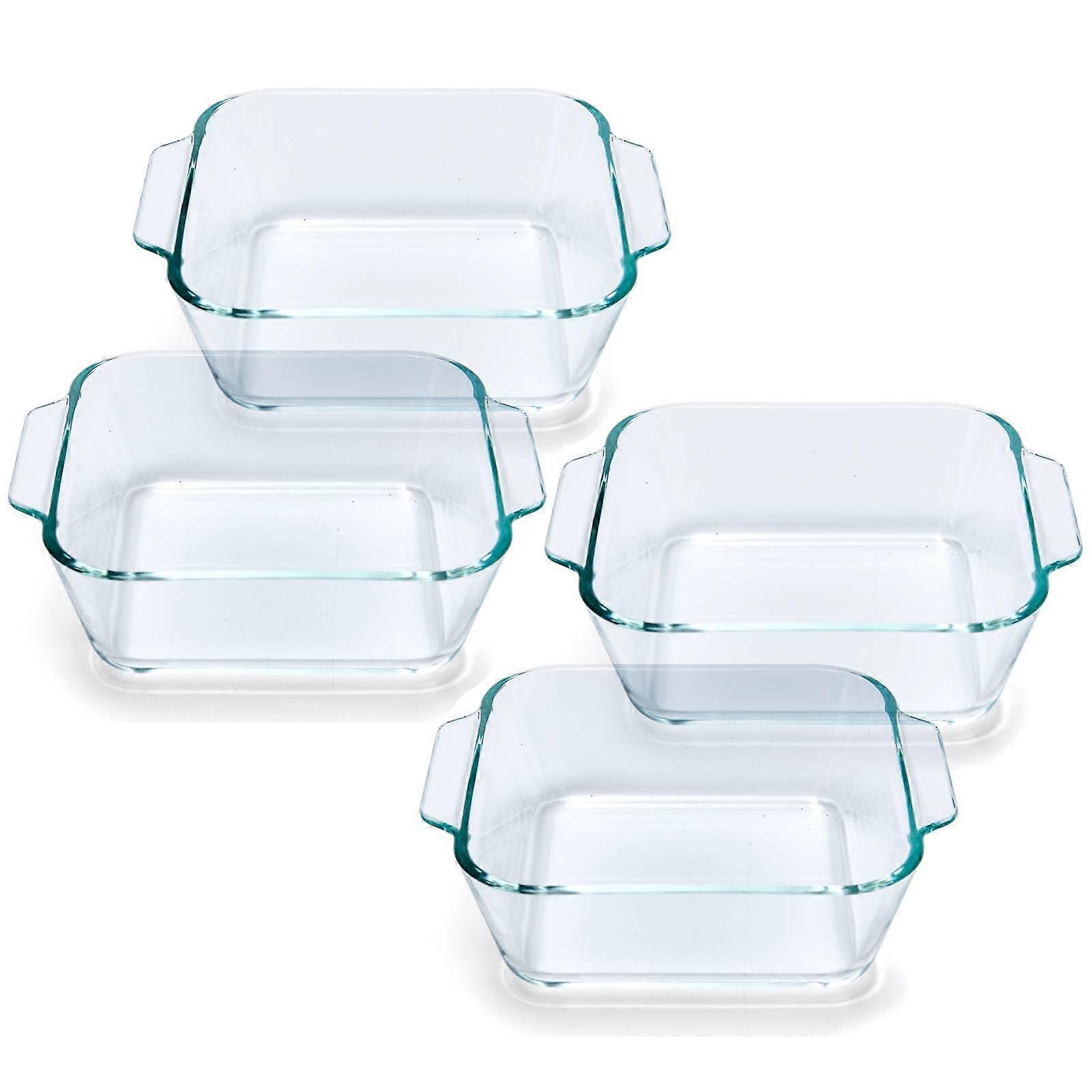 Quality Borosilicate Glass Construction Made from borosilicate glass for exceptional clarity, heat resistance, and corrosion resistance Designed for longlasting use, with easy cleaning and maintenance Dishwasher safe for convenient cleanup Size for Cubes and Reheating Interior dimensions: 5.2 x 5.2 inches, height: 2 inches Ideal for transferring food directly from freezer to oven, microwave, or air fryer Fits most cubes from 1cup silicone freezer trays, making it versatile for meal prep and reheating Durable Square Glass Casserole Dish Set of 4 Set includes four small square baking dishes Safe for temperatures ranging from 40°F to 482°F Can handle instantaneous temperature changes up to 248°F Allow natural cooling between hot and cold use to protect longevity Not recommended for use with tinfoil MultiPurpose Mini Casserole Dish Designed for individual portions with easygrip handles for baking and serving casseroles, stews, lasagna, brownies, cookies, desserts, pasta, chicken, fish, vegetables, and more Practical as a meal prep container or portionsize dish Application Examples 1. Bake a lasagna or casserole directly in the dish and serve instantly from oven to table 2. Reheat frozen meal cubes quickly and evenly without transferring to another container 3. Prepare singleportion desserts or side dishes for guests, ensuring consistent size and presentation This set combines clarity, durability, versatility, and convenience, making it a practical addition to any kitchen for everyday cooking, reheating, and serving needs.