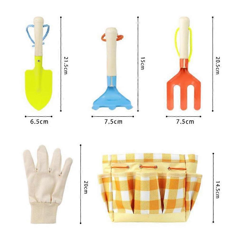 Awesome gardening tools set will encourage children to cultivate . This item is well made of for durable and practical use. It is a colored, practical and educational tool set that provides kids with all the they need to learn of gardening. Light weight but useful tools kit. Feature - Color: Assorted. - Material: Metal, cotton cloth, wood. - Size: Approx. 21.5 x 6.5 x 2.5cm/8.46x2.56x0.98 inch. - Made of for durable and practical use. - Set includes watering kettle, gloves, , hoeing rake, teeth and carry tote bag. - Tools made with wooden handles and quality . - Rounded edges for safety. - Great gift for kids to cultivate . Package list: 1 x watering kettle 1 pair of x gloves 1 x 1 x hoeing rake 1 x rake 1 x carry tote bag