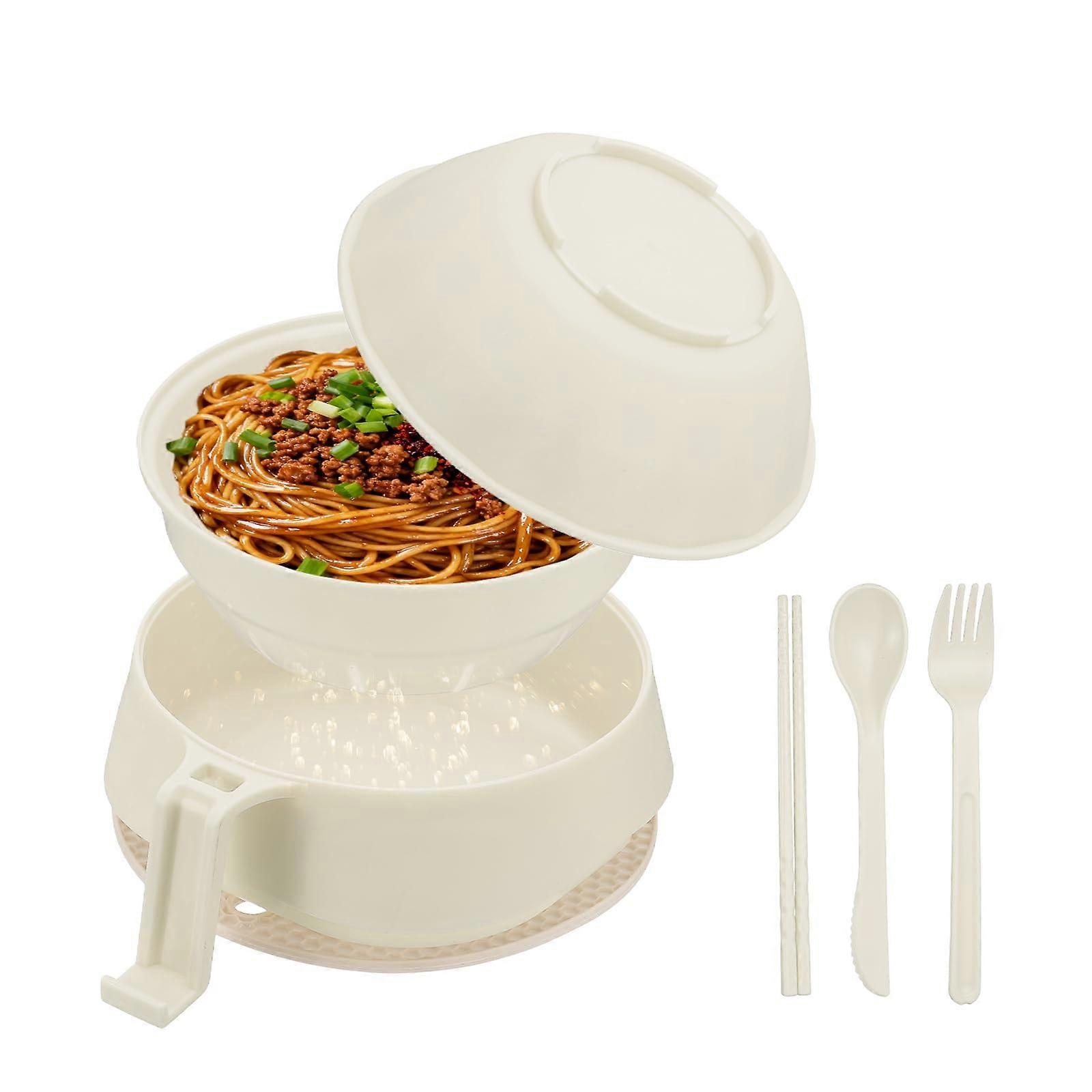 Microwave Ramen Cooker Bowl Set with Lid Handle and Utensils, Wheat Fiber for Dorm or Apartment