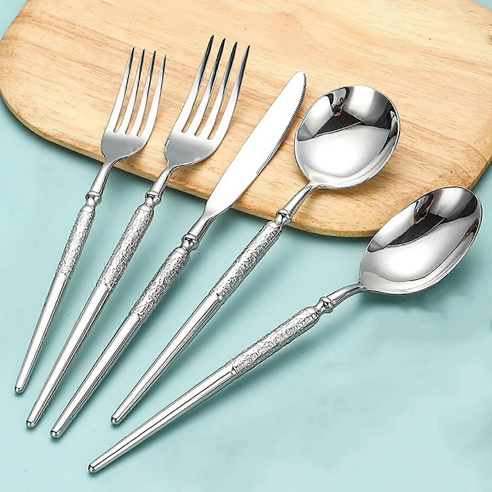 50 Piece Hammered Stainless Steel Silverware Set for 10, Mirror Polished Flatware, Dishwasher Safe