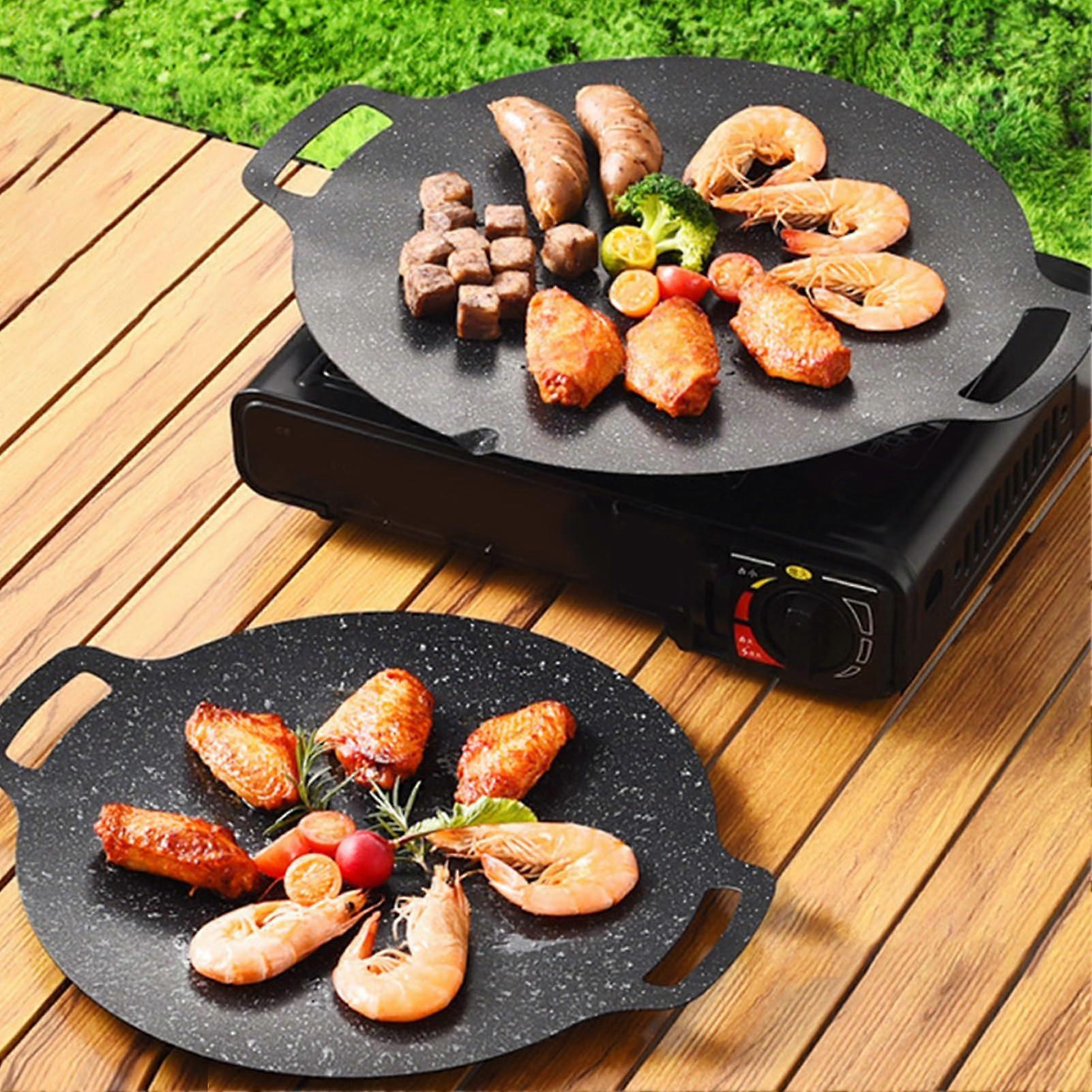 Korean BBQ Grill Pan 38cm Maifan Stone Nonstick Round Pan for Outdoor Cooking and Portable Stove