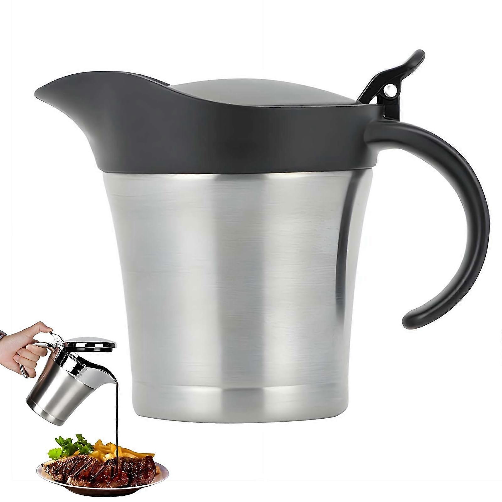 Stainless Steel Gravy Boat with Lever Lid, 450ml Double Wall Insulated Sauce Jug, Drip Spout, Black