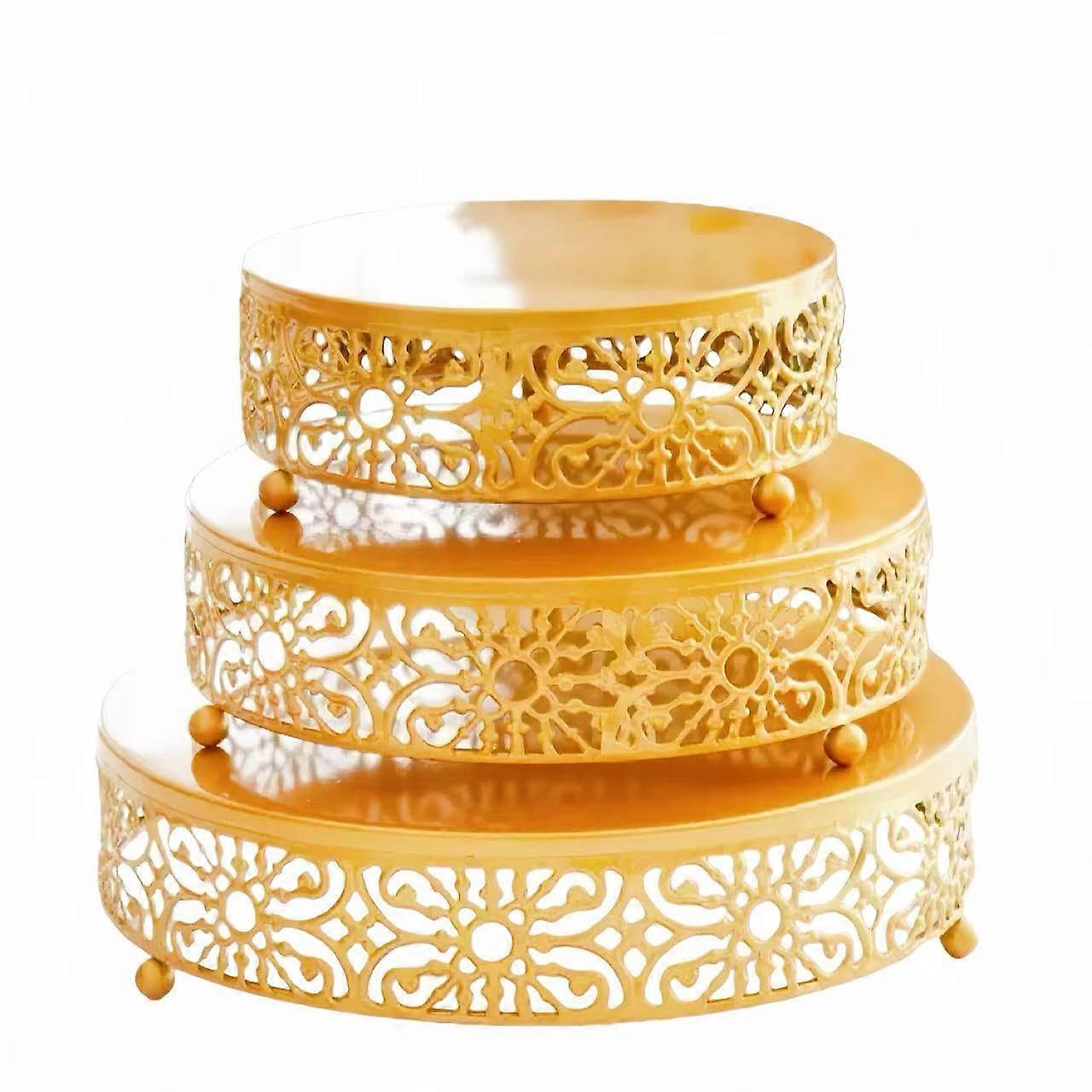 Gold Metal Cake Stand Set 3Pcs Round ThreeTier Display for Wedding Birthday Party Desserts
