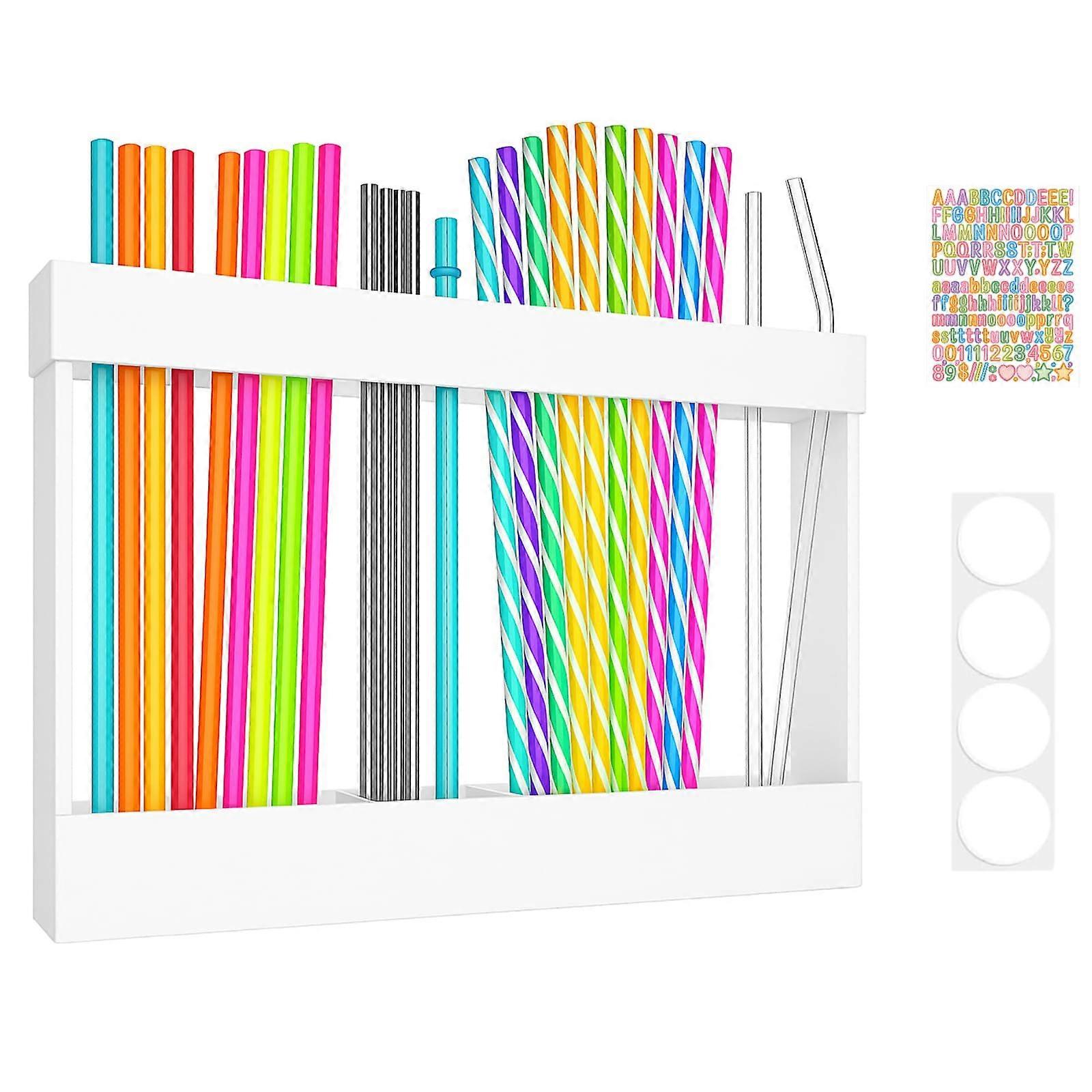 Acrylic Cabinet Straw Holder Organizer, Slim SpaceSaving Wall Mounted Storage for 30+ Reusable Straws, White 10inch