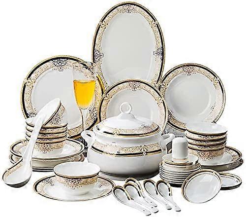 56 Piece Porcelain Dinnerware Set for 10 with Elegant Floral Design, Microwave and Dishwasher Safe