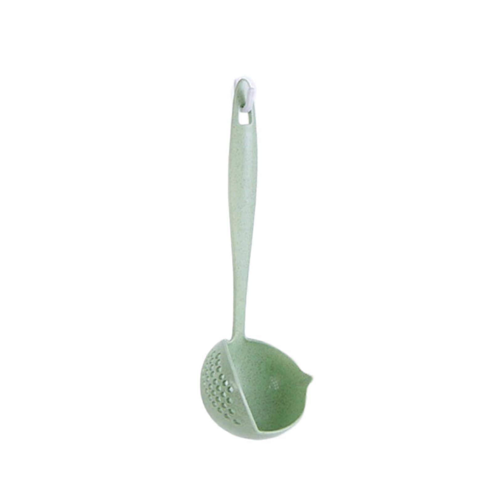 2in1 Strainer Ladle HeatResistant Soup and Noodle Serving Spoon Nordic Green for Hot Pot Cooking